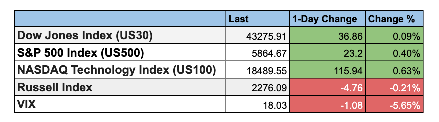 Mixed results yesterday: Dow, Nasdaq, and S&P 400 up; S&P 500 and Russell 2000 down