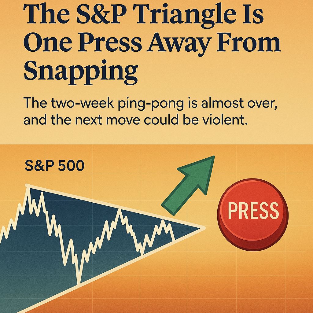 The index is still in a grinding uptrend, but the last two weeks shifted to tight mean-reversion inside a descending triangle. Volume keeps drying up at midpoint 6050 and expanding when we tag either wall. Traders are clearly fading extremes until a headline forces commitment.