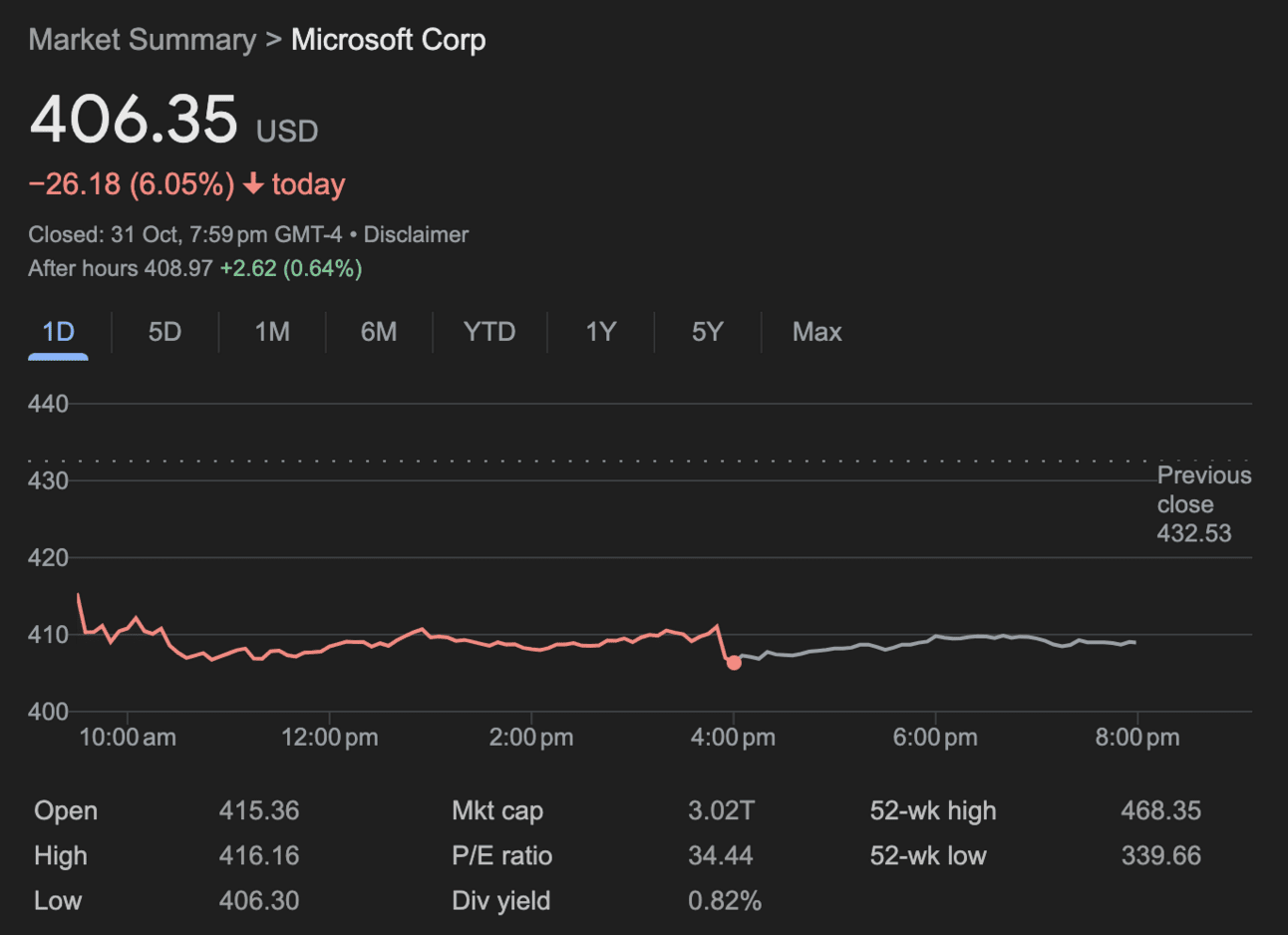 Microsoft: ▼ 6% (Revenue forecast misses expectations)